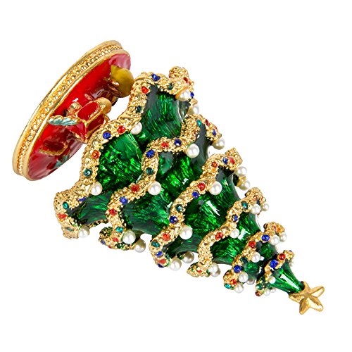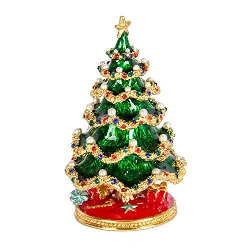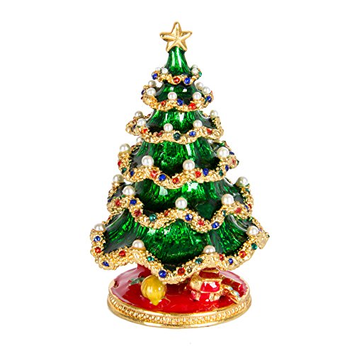 QIFU-Hand Painted Enameled Christmas Tree Decorative Hinged Jewelry Trinket Box Unique Gift For Home Decor