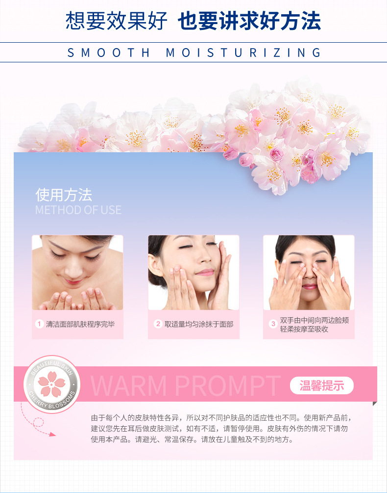 Efficacy: Contains cherry extract and a variety of nourishing essence, make skin smooth and moist, smooth and moving