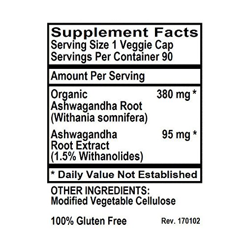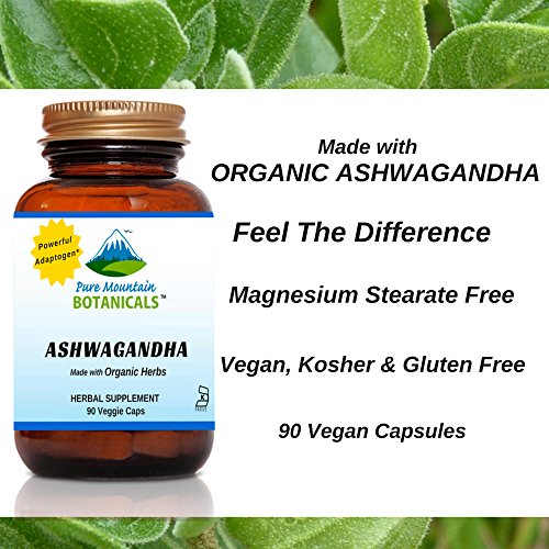 -. Feature : MADE with ORGANIC ASHWAGANDHA - Our Kosher certified capsules are filled ONLY with Organic Ashwagandha Root and Powerful Ashwagandha Extract and NOTHING ELSE. / TRUSTED: Our Ashwagandha Capsules are VEGETARIAN, KOSHER and GLUTEN FREE. Feel Secure Knowing You're Only Putting the Absolute Best Product in Your Body, Made with NO Harsh Preservatives, Fillers or Flowing Agents - NO Sodium Benzoate, NO Magnesium Stearate, NO GMOs / CONTAINS: Organic Ashwagandha Root Powder - 90 Vegan Kosher Capsules with 380mg raw organic ashwagandha powder (withania somnifera) and 95 mg powerful Ashwagandha extract standardized with 1.5% Withanolides. / 100% MANUFACTURE'S MONEY BACK GUARANTEE - Try the Best - Risk Free! This pure Ashwagandha supplement and ALL Products from Pure Mountain BotanicalsTM are covered by a no-question asked money back guarantee.