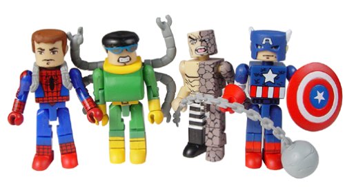 Marvel Universe Mini-Mates Unmasked Spider-Man Captain America Absorbing Man and Dr. Octopu