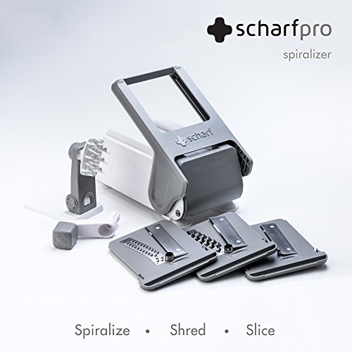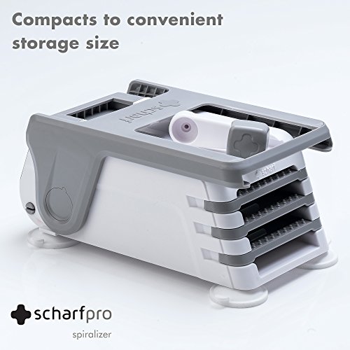 ScharfPro Folding Vegetable Spiralizer - Three Blades - Compact and Heavy-Duty Spiral Vegetable Slicer - Turn Zucchini, Carrots, Potatoes and much more into Beautiful Long Strands (Gray)