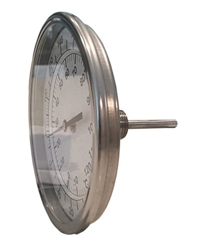 5" Dial x 2.5" Stem Brewing/Distilling Thermometer with 1/2" NPT