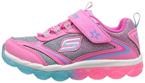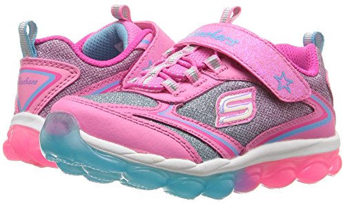 Skechers Kids Skech Air Bubble Beatz Bungee and Strap School Sneaker (Little Kid/Big Kid), Silver/Pink/Multi, 10.5 M US Little Kid