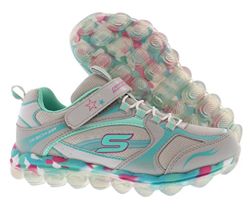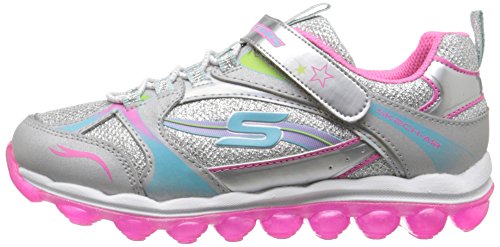 Skechers Kids Skech Air Bubble Beatz Bungee and Strap School Sneaker (Little Kid/Big Kid), Silver/Pink/Multi, 2.5 M US Little Kid