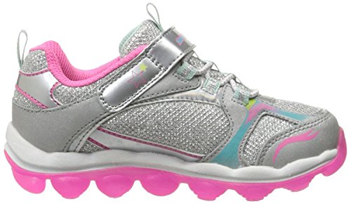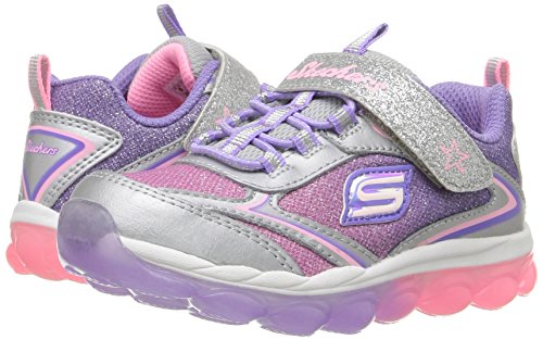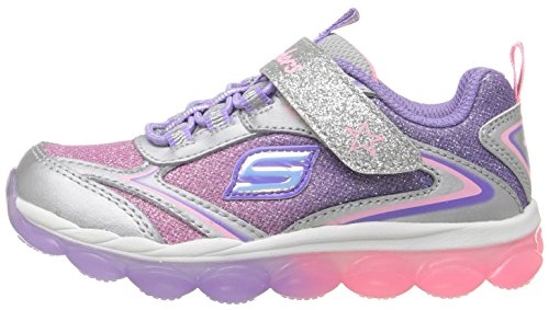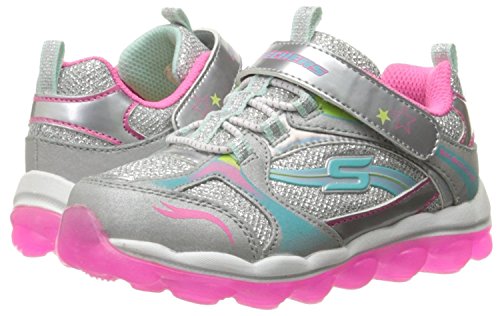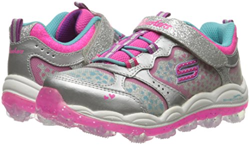Skechers Kids Skech Air Bubble Beatz Bungee and Strap School Sneaker (Little Kid/Big Kid), Silver/Pink/Multi, 12 M US Little Kid