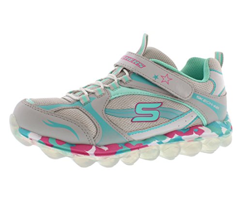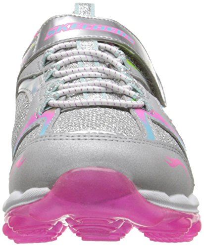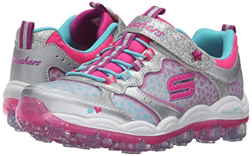 Skechers Kids Skech Air Bubble Beatz Bungee and Strap School Sneaker (Little Kid/Big Kid), Silver/Pink/Multi, 11 M US Little Kid