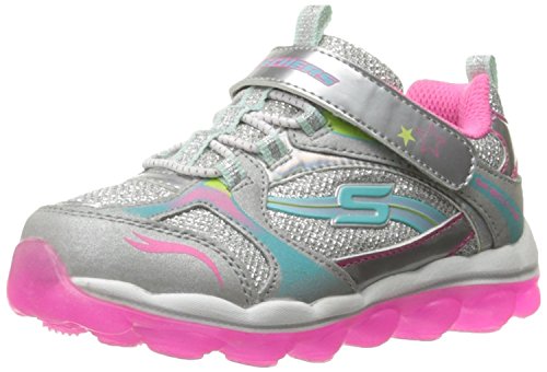 Skechers Kids Girls' Skech-Air Ultra-Bity Bubbles Running Shoe, Silver/Pink/Blue, 10 M US Toddler