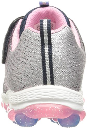 Skechers Kids Skech Air Bubble Beatz Bungee and Strap School Sneaker (Little Kid/Big Kid), Silver/Pink/Multi, 1 M US Little Kid