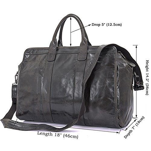 Basic Specification Dimension ( W x H x D ) 18 x 14 x 7 inch Style, Large hand tote/ leather duffel Perfect for outdoor hiking/camping, business trip, gym or sports A nice gift for your friends or spouse
