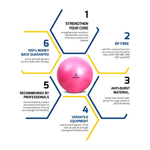 Exercise Ball - Professional Grade Anti-Burst Yoga Fitness, Balance Ball for Pilates, Yoga, Stability Training and Physical Therapy (Pink, 75cm)