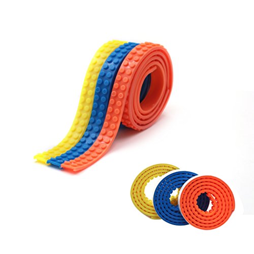 -. Feature : Color: Blue,Orange,Yellow. Each color has two sections.Package includes: 3x6 sections building block tape. / Size: The length of each section is 1.6 feet. Total length is 3.2 feet. / Features:Groove design, paste more perfect, seamless.The back of the use of acrylic plastic can be repeated paste. Self-adhesive tape made from silicon can be mounted anywhere and leaves little to no residue after removal. / Material:Environmentally friendly a non-toxic ABS plastic. Super-flexlble and easy to cut into smaller pieces.Compatible lego and nimuno loops tape. / Warning: do not put the tape on easily damaged things like wallpaper,soft wall, which will be teared.