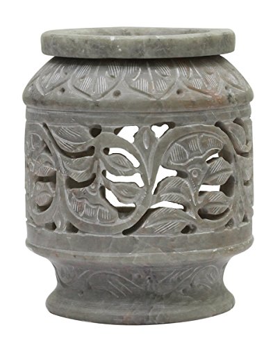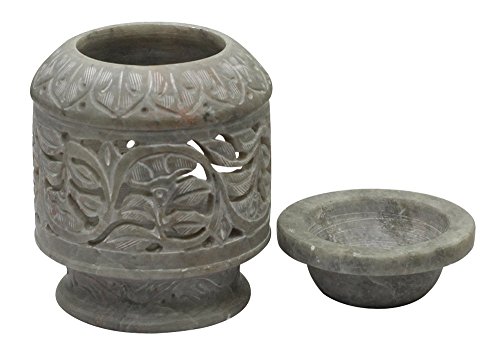 SouvNear 4 Inch Tealight Holder and Oil Diffuser - Traditional Jaali Art Oil Warmer / Burner for Aromatherapy Fragrance with Detachable Soapstone Tealight Candle Holder - Home Decorations