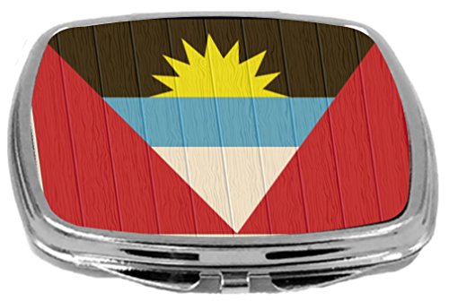 Rikki Knight Compact Mirror on Distressed Wood Design, Antigua and Barbuda Flag, 3 Ounce