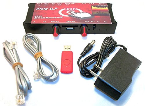 iHold A4LP 4-Line Music On Hold Player system for all corded or cordless 2 line or 4 line telephones, "All-In-One" Music On Hold adapter plus mp3 On-Hold Music Player
