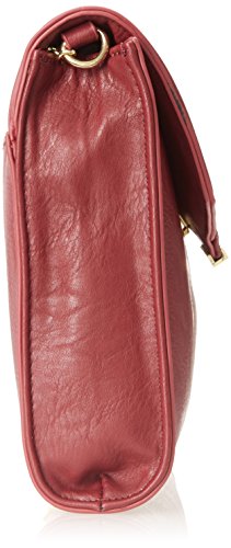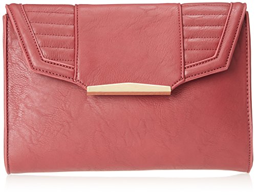 Faux-leather clutch with moto-inspired quilted flap and metallic accents