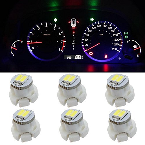 Cross Reference / Compatible socket bulb number: T3, 39397-SA5-003, 35852-SEP-A02, 35853-SDA-A01 Features: Neo Wedge Wide Angle bulbs provides wide angle beam and excellent wide spread of light. These units are excellent for replacing instrument cluster panel, dashboard gauge, Climate Control light bulbs. Description: Brand new and high quality Plug and play, easy to install Applications: instrument cluster panel lights, dashboard gauge indication bulbs Type: Neowedge Bulbs Part Number: T3 Color: White, 5500~6000K Voltage Wattage: 12-14V DC Current:0.01mA Beam Pattern: 180 Lumen: 17lumens, approx 34CD Base Size (Width) : T3 - 8mm, T4 - 10mm, T5 - 12mm Package includes: 6XT3 LED Neo Wedge lights 0 |