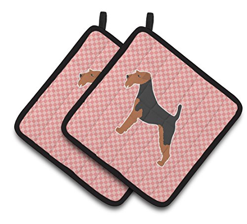 Caroline's Treasures Airedale Terrier Checkerboard Pink Pair of Pot Holders BB3657PTHD, 7.5HX7.5W, Multicolor