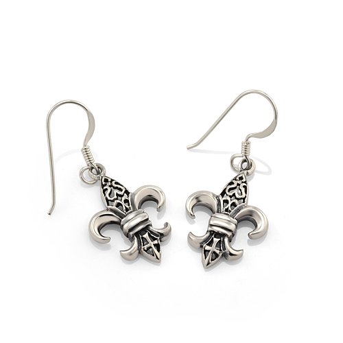 These beautiful Fleur de Lis earrings would be wonderful additions to any wardrobe. The included black velvet pouch also makes it the perfect gift for someone special. Made from 925 sterling silver. Beautiful and meaningful piece of jewelry. The English translation of "fleur-de-lis" (sometimes spelled "fleur-de-lys") is "flower of the lily." This symbol, depicting a stylized lily or lotus flower, has many meanings. Traditionally, it has been used to represent French royalty, and in that sense it is said to signify perfection, light, and life.