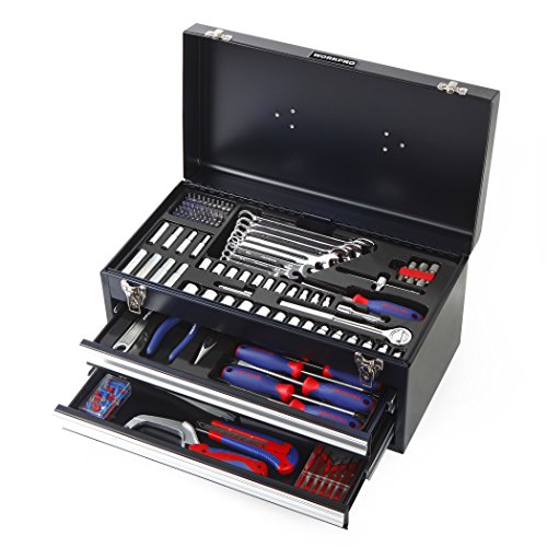WORKPRO W009028A 229-Piece Mechanics Tool Kit with Two Drawer Metal Box, Basic Daily Use Tool Set