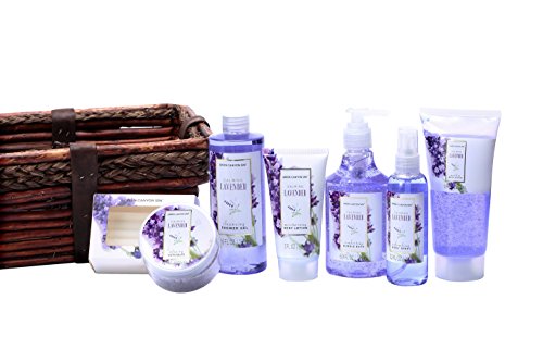 -. Binding : Misc. -. Brand : GREEN CANYON SPA -. EAN : 0814990015537 -. Feature : PREMIUM AT-HOME SPA GIFT: Treat yourself to a luxurious at-home spa experience. Our indulgent gift set of fragrant and pampering bath and body products are formulated with only the best ingredients and is carefully handcrafted with the highest level of quality and care. Our upscale and beautiful packaging is perfect as a gift or for your own indulgent pleasure. / SUPERIOR FORMULATIONS WITH FRAGRANT ESSENTIAL OILS: Our unique and proprietary bath and body formulations contain the finest ingredients. Nourishing ingredients such as Sunflower Seed Oil and Vitamin E help to moisturize and soften dry skin. Soothing and relaxing Lavender essential oils calm the mind, promote overall well-being and provide the ultimate spa experience / LUXURIOUS BASKET: This large wicker basket is handcrafted to perfection with attention to craftsmanship and detail. It can be used in many different ways such as storing a variety of items in a powder room, bathroom or bedroom. It is the perfect size to make any recipient feel pampered and special. -. IsAdultProduct : 0 -. Label : BODY & EARTH Inc -. Manufacturer : BODY & EARTH Inc -. MPN : BEGC-GS-1010 -. PackageQuantity : 1 -. PartNumber : BEGC-GS-1010 -. ProductGroup : Beauty -. ProductTypeName : BEAUTY -. Publisher : BODY & EARTH Inc -. Studio : BODY & EARTH Inc -. Title : Green Canyon Spa Luxury Wicker Basket Gift Set in Lavender, 8 Pieces Premium Bath and Body Spa Products in Handcrafted Basket -. UPC : 814990015537