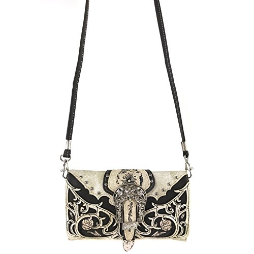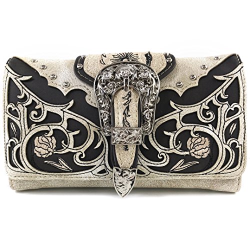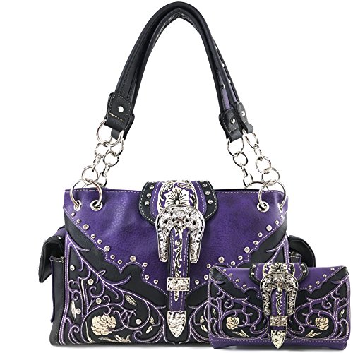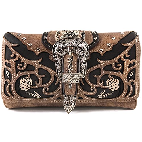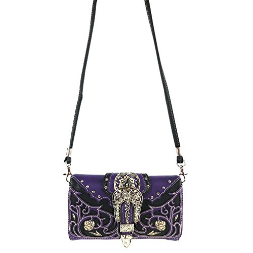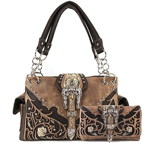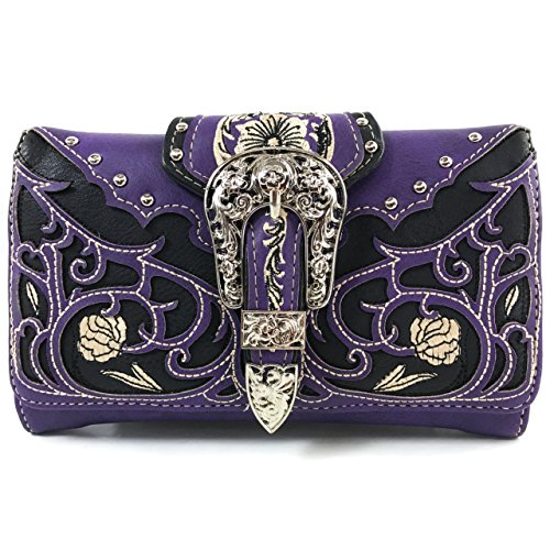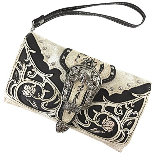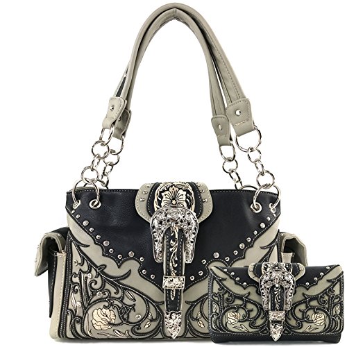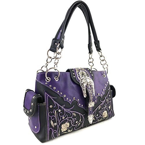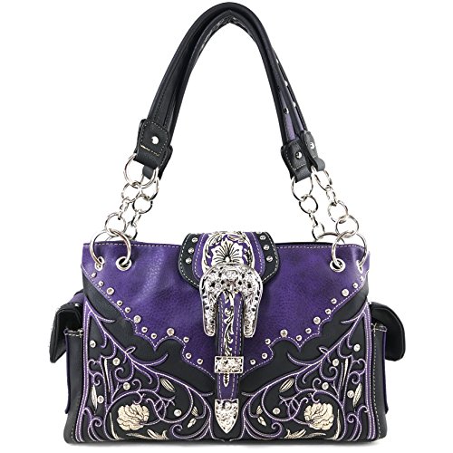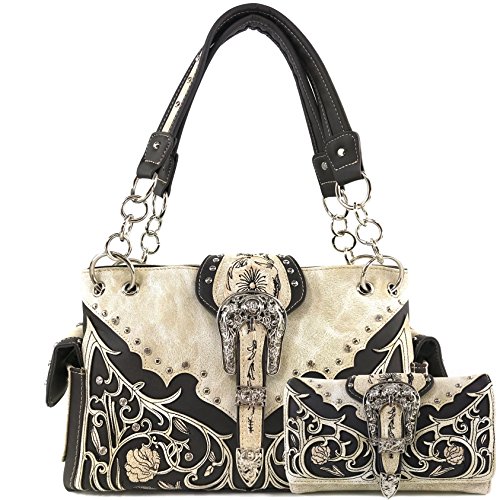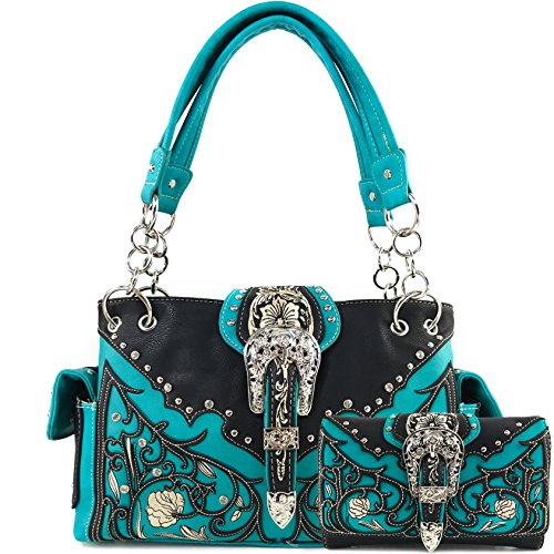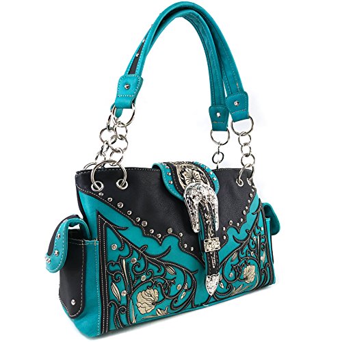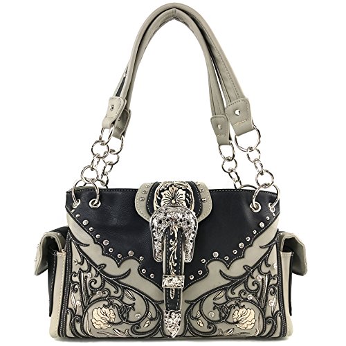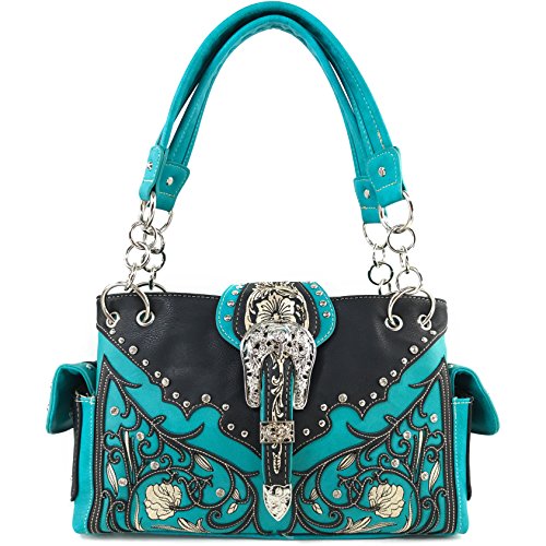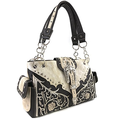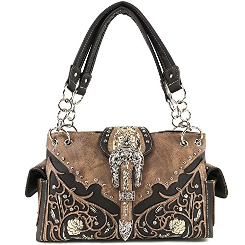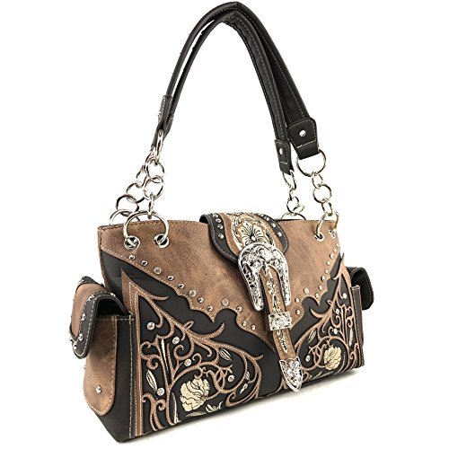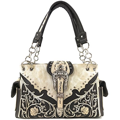 | (Justin West)/Accessories/Handbags/DIRECT FROM USA/Justin West Western Concealed Carry Silver Buckle Hand Embroidered Flower Leather Vines Leave... |