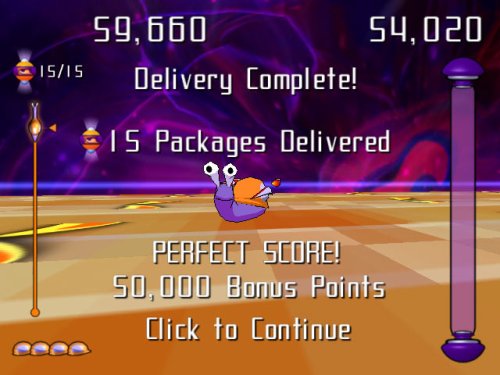 Speedy Delivery! Guide Turbo the Snail through the furthest reaches of the universe to deliver Intergalactic Mail in this fast-paced racing game. But watch out for the evil slugs! Play through all 50 levels in Postal Mode, test your reflexes in Challenge Mode, and get the fastest time in Time Trials.