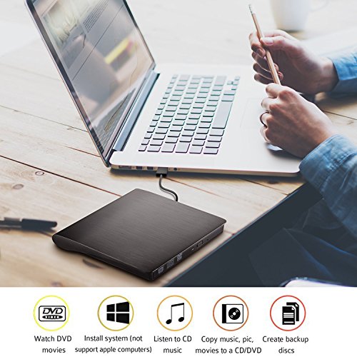 ◆ SUPPORTS Plug & Play FUNCTION: It is very easy to use.Don't need to install software to set for driver.Our external DVD drive is powered by USB port.No external driver and power needed. Just plug it into your USB port and the DVD driver will be detected. With this External CD Drive you can record CD, music, videos, installing software or create CD/DVD backup disc.
