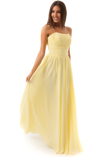 - Title : Fiesta Formals Long Chiffon Bridesmaids Dress with Ruching and Pleated Scoop Neckline - Yellow - 2XL