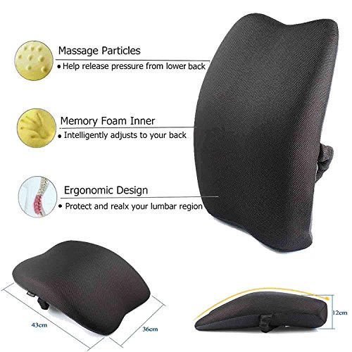 ERGONOMICALLY SHAPED CUSHION: Fit the streamline profit of lumbar support with adjustable elastic strap,properly support your lumbar; And rubber bottom massage reduces abrasion independently.