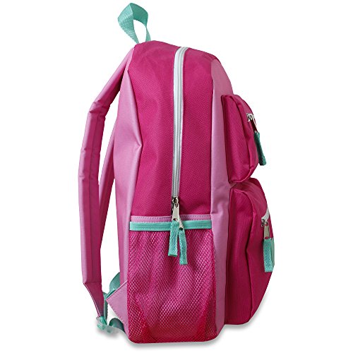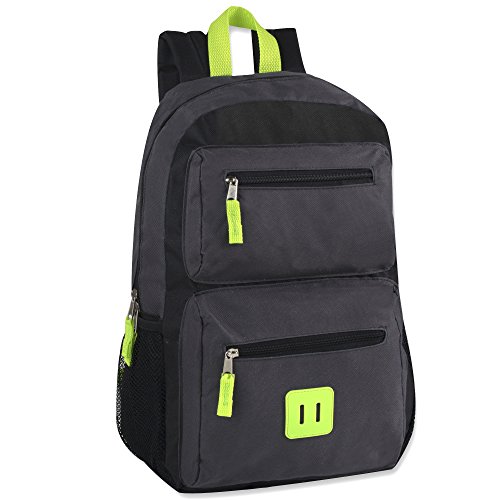 Product Description This multi pocket backpack has tons of places to hold your belongings while on the go. This backpack measures 18 inches and has a large main compartment for all your school and personal needs. The two zippered compartments on the front are a perfect fit for your easy to grab items and accessories on the move. On each side there are mesh pockets designated for your water bottle as easy storage. The padded adjustable straps and back will give you a custom comfortable fit for your everyday wear. This backpack is the perfect way to stay organized! 0