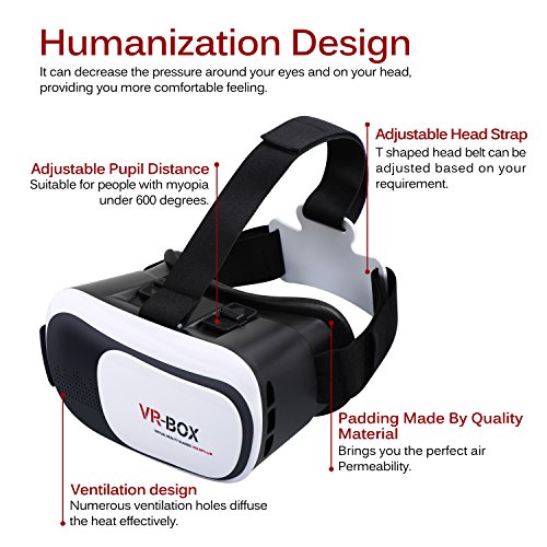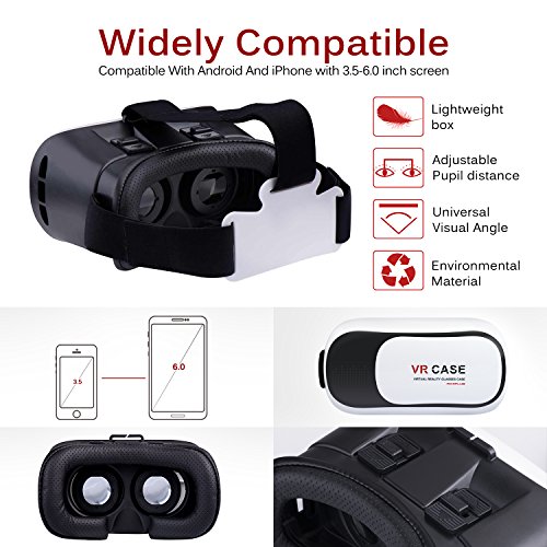 -. Binding : Electronics -. Brand : Eashion -. Color : White -. EAN : 7860966532587 -. Feature : Innovative VR headset for truly fun shocking IMAX effect! Smartphone turned into virtual reality viewer. Download vr apps, watch 3D video & movies, play virtual reality games. Revel into the world of VR. / Use high quality ABS and 42mm diameter spherical resin lens material without stimulation plastic sheet, environmental, high quality, lowering down the distortion to the minimum when magnifying the images and providing wider view; You will not feel visual fatigue and dizzy even you use it for a long time because of the resin lens. / The T-shaped straps make it adjustable for different people. Its design can also help decrease the pressure on around your eyes so you will feel much more comfortable when enjoy the movie or game; Simulating Viewing Distance: Offer you a 1000 inches big screen at the distance of 3m; Offers you super 3D picture effect and wonderful feeling. / Fits Apple and Android mobile phone (3.5-6.0 inches) iPhone 6 6S 6 Plus 6S Plus 5c, Samsung Galaxy, Note, LG G3, Sony Xperia Z3 Note Nexus. 4.7-6.0inch smartphones will get better viewing angle. / One-year limited warranty from Eashion. Leave us a message anytime if you have any questions and we'll get back to you within 24 hours. -. Label : Eashion -. Manufacturer : Eashion -. Model : B01IPBR5NU -. MPN : B01IPBR5NU -. PackageQuantity : 1 -. PartNumber : B01IPBR5NU -. ProductGroup : Speakers -. ProductTypeName : CE_ACCESSORY -. Publisher : Eashion -. Studio : Eashion -. Title : Eashion(TM) 3D Virtual Reality Headset with Adjustable Lens and Strap, Suitable for Google, iPhone, Samsung, LG, Huawei, HTC, Moto Smartphones(Black)