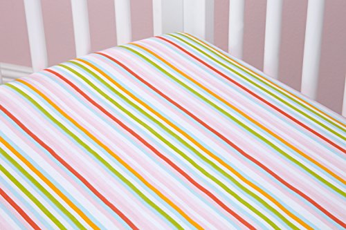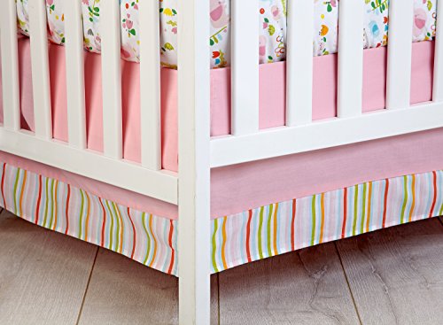 -. Feature : Comforter, 2 Crib Sheets (stripe and character P.R.Int), Dust Ruffle and wire wall decor / 55% cotton 45% polyester 180 TC. Colors are soft pinks, turquoise, aqua, green, yellow and white. / Machine wash separately in cold water, gentle cycle. Use only non-chlorine bleach when needed. Tumble dry on low heat. Iron on low heat when needed. Do not dry clean. / Coordinates sold separately: Traditional Padded Bumper, 2 Pack Sheet Set, and Ceiling Mobile