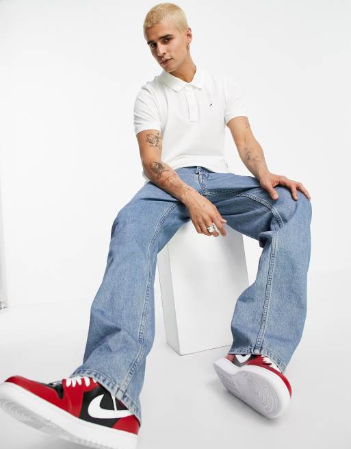 Tommy Jeans pique polo shirt in white