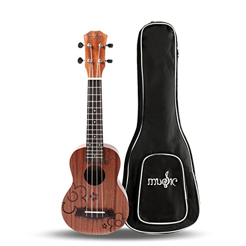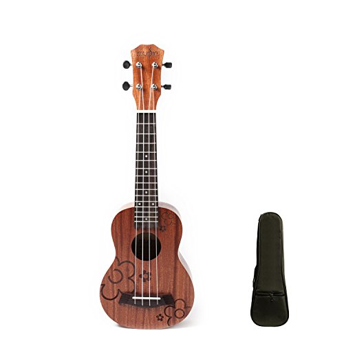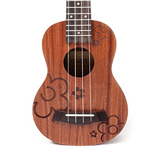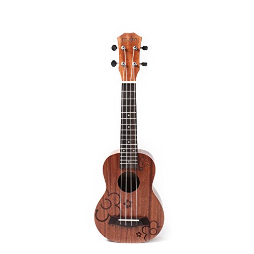 ?Size:Soprano, 21 inch ukulele. ?High quality ukulele.The Uke is with full wood construction,including Mahogany body, top back and sides and rosewood fingerboard and bridge,exquisite laser-engraving floral tattoo picture. ?Classic Design. Making its first major appearance in the USA in San Francisco, the ukulele continues to delight and attract fans of every age, gender and skill level. Little has changed in the design over the years proving that it's never a good idea to change something that works!