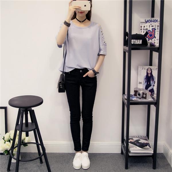 肩から袖にかけての穴あき加工がオシャレ☆シンプルながらもセクシーです…【カラー】ホワイト、ピンク、パープル【サイズ】【M】胸囲116/袖丈34/着丈:前54・後59(cm)【L】胸囲120/袖丈36/着丈:前56・後61(cm)※製品により多少の誤差が生じる場合がございます。【素材】綿・ポリエステル 【ご使用上の注意】着用に問題のない製法のほつれ、商品の性格上、開封された商品・一度でも着用されました商品の返品・交換は一切お受け致しません。イメージと違う、サイズが合わない等の理由での返品は一切受け付けておりません。購入後のサイズ交換は対応しておりません。生産終了後すぐ発送しているため匂いがある場合がございます。ご了承ください。【生産国】made in china※商品はご注文を頂いてから2週間前後の到着となります。