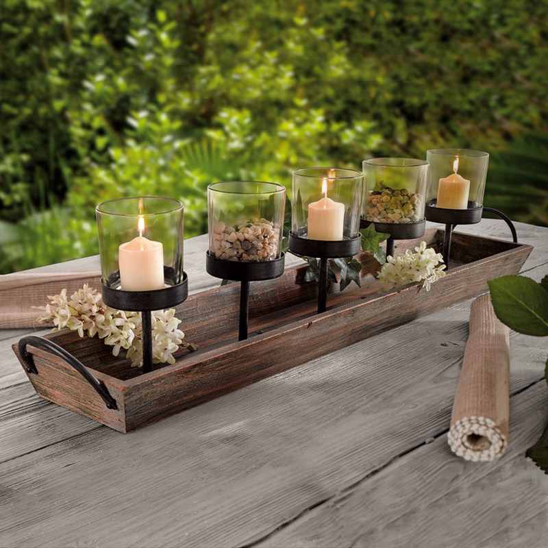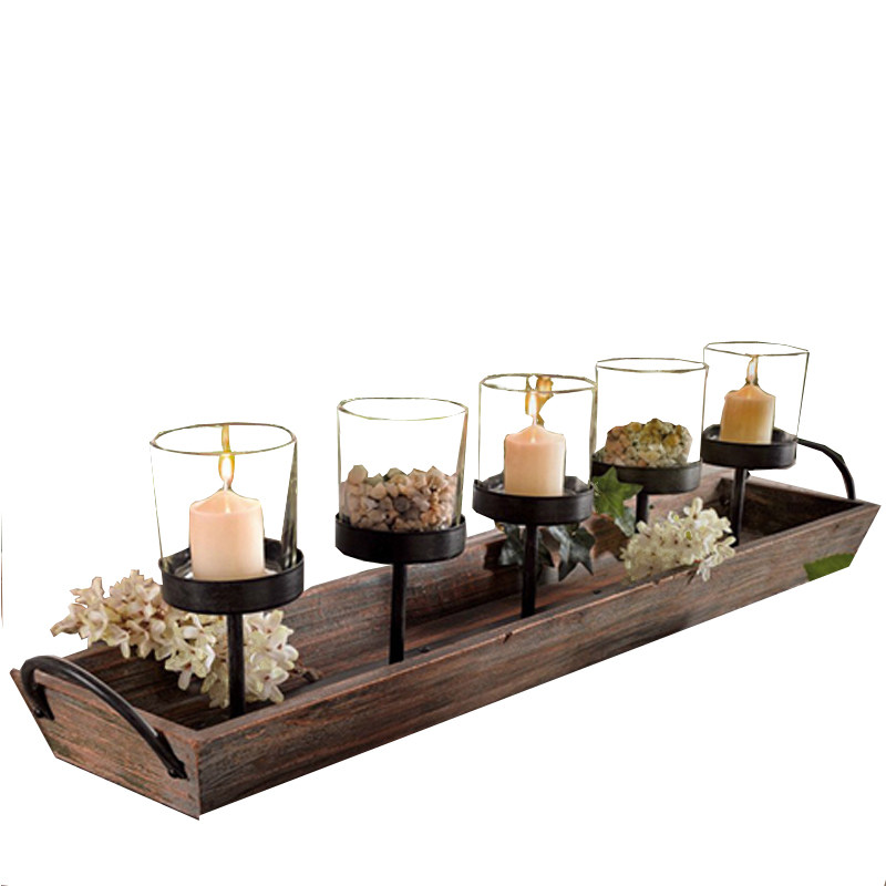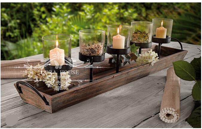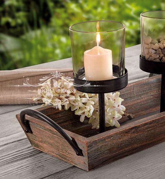DORA HOUSE欧式法式复古木质烛台 仿古做旧酒吧别墅装饰配烛杯