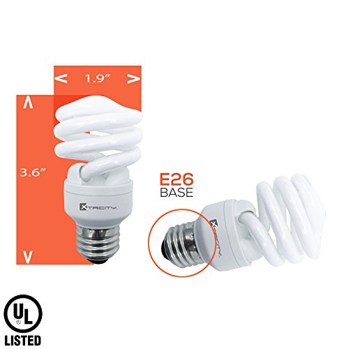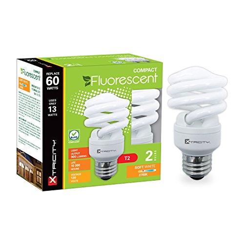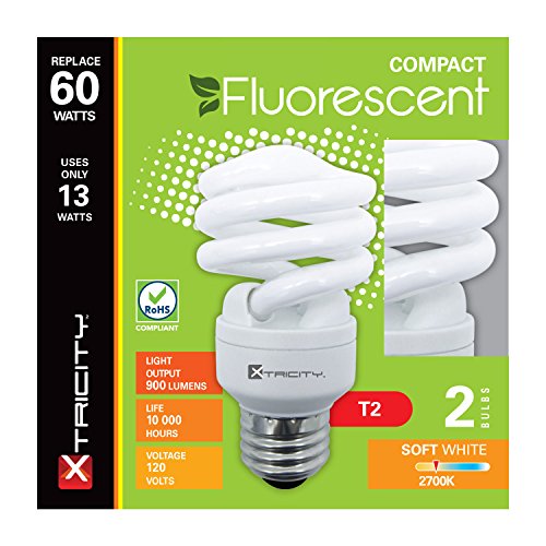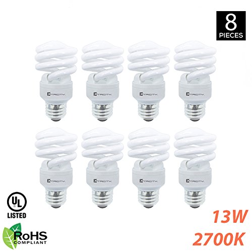 Xtricity Compact Fluorescent T2 Spiral CFL Energy Saver Light Bulb, 13W (60W Equivalent) 120 Volt, 900 Lumens, 2700K Soft White, E26 Medium Base, RoHS Compliant & UL Listed, (Pack of 8)