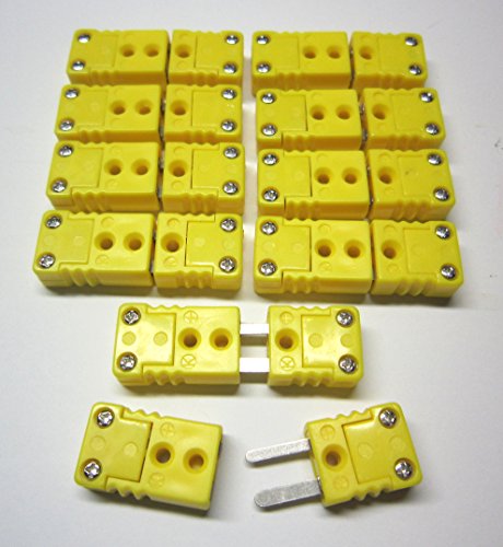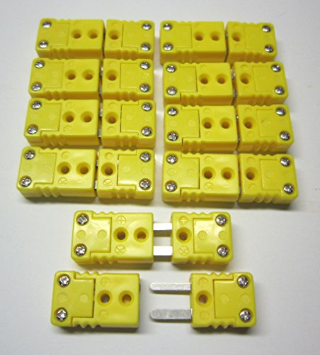 Studio : MN Measurement Instruments Publisher : MN Measurement Instruments Product Description This listing is for 10 sets of Miniature K-Type Thermocouple connectors, one male connector and one female connector each per set. They conform to the miniature connector dimensions (10mm or 7/16 inch spade type) and the K-Type thermocouple wire specification. Use a pair of these mini k-type connectors to build thermocouple extension wires or to patch a broken thermocouple wire connection. The plugs have small holes in the center, this allows you to secure them using a cable binder or string, or you can screw them to equipment. 0