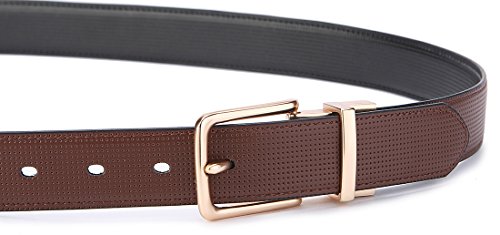 REVERSIBLE:-Getting two belt colors with paying for just one Belt!! Rotated buckle making it easy to reverse the belt from black to coffee and vice versa, you can make this change to match different dresses.