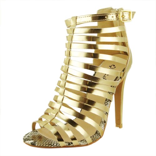 큐피드/여성용 오픈토 샌들/Qupid Women's Interest74 Leatherette Metallic Strappy Open Toe Sandal