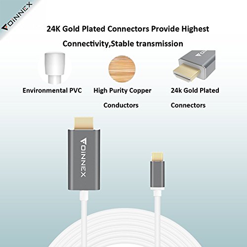 USB C to HDMI Cable,(4K@60Hz,6ft.), FOINNEX USB Type C (Thunderbolt 3) to HDMI Male 4K adapter Cable for MacBook Pro 2017 2016,Pixel,Galaxy S8/S8 Plus,Google ChromeBook etc to HDTV,Monitor,Projector