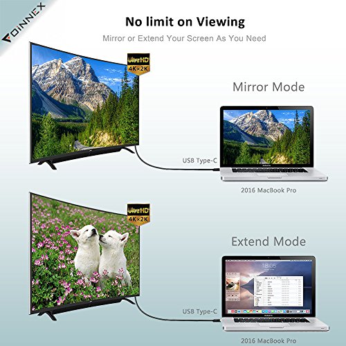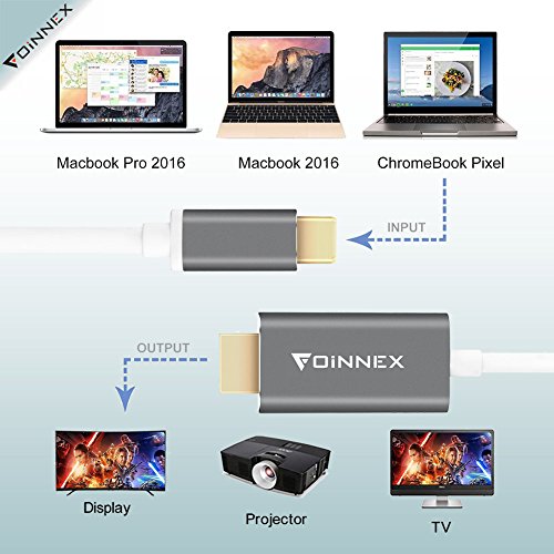 FOINNEX USB C to HDMI Cable connects your laptop or smartphone (such as MacBook Pro 2017,2016/ Macbook 2015 / Galaxy S8/S8 Plus/Chromebook Pixel/ Dell XPS 13 etc) to HDTV, monitor or projector via Thunderbolt 3 port /USB type C port