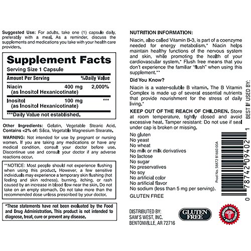 -. Feature : Supports carbohydrate and protein metabolism* / Helps maintain healthy skin and heart* / Inositol hexanicotinate capsules / Gluten free
