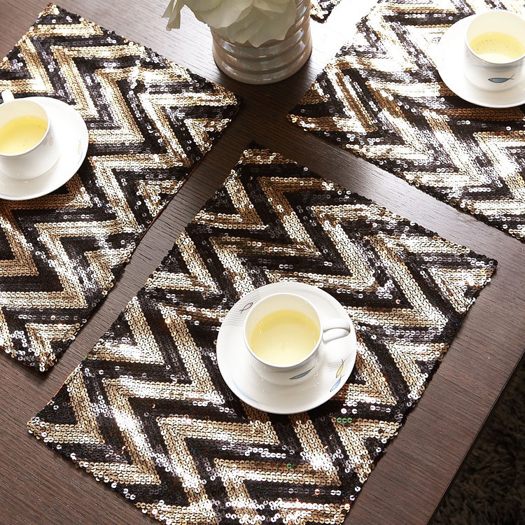 Color change at home cloth products can achieve the fastest? most economical home decorative effect. Curtains? pillow? sofa cushion? table runner? the pursuit of the details that you do not miss another practical and beautiful placemat Oh! This is a very upscale gorgeous new beads placemats? table mountain flat pattern to bring a sense of simple lines. Heavy drape? shining. Immediately enhance the feeling of luxury gorgeous dining area.