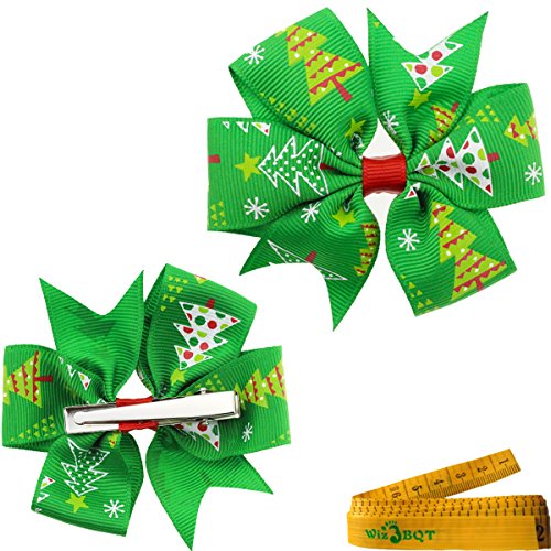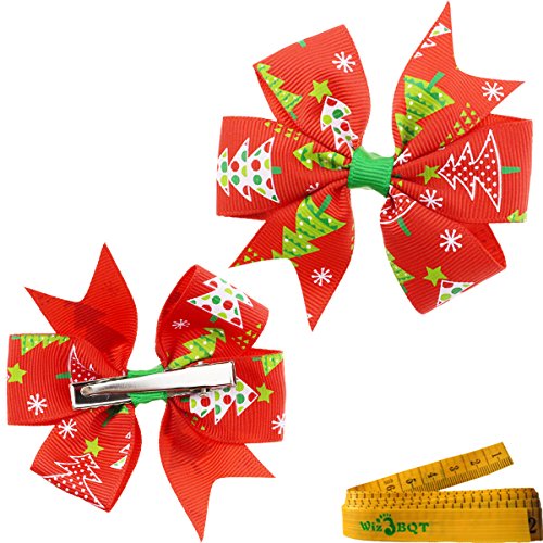 -. Feature : A pair of hair clips (about 3" in width) + a pair of hair bands (about 2" in width). / Great for Christmas family photo taking, Christmas party, daily use. / Adorable and cute, they will help to make you "baby" look more fashionable, attractive and win more compliments. / Bright colors to gladden everyone. / Bonus Wiz BBQT tape: help to record the growing of your "baby".