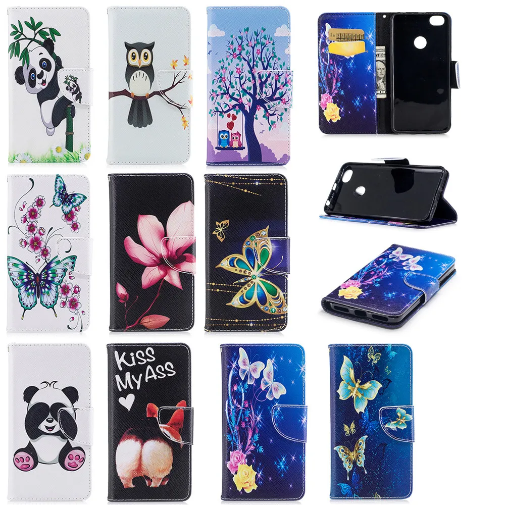 Patterns:Butterfly Panda Owl Lotus Painted Leather Case Cover