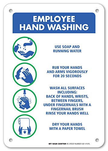 Employee Hand Washing Sign - 10"x7" - .060 Heavy Duty Plastic - Made in USA - UV Protected and Weatherproof - A81-415PL