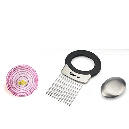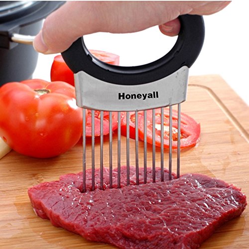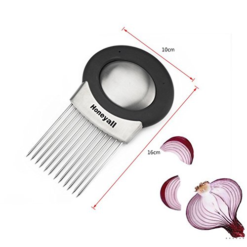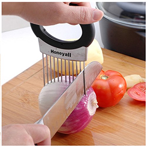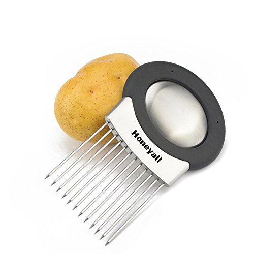 Easy to use-12 sharp tines,3 inch long each, you can steadily stick them into vegetables like onions,tomatoes and potatoes,then it's easy to make uniform cuts.