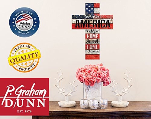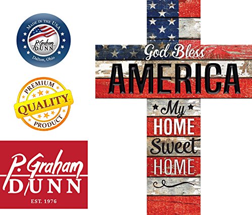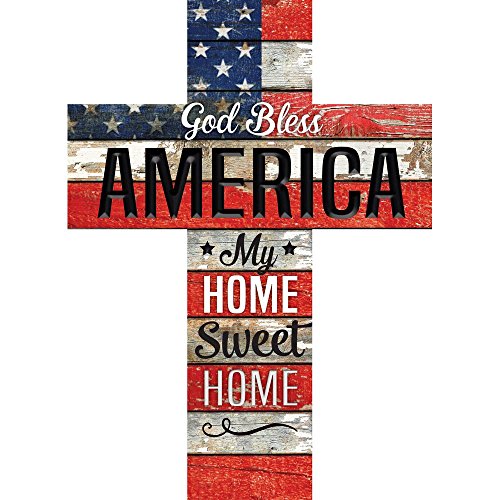 God Bless America Home Sweet Home Flag 24 x 18 Wood Wall Art Plaque Cross