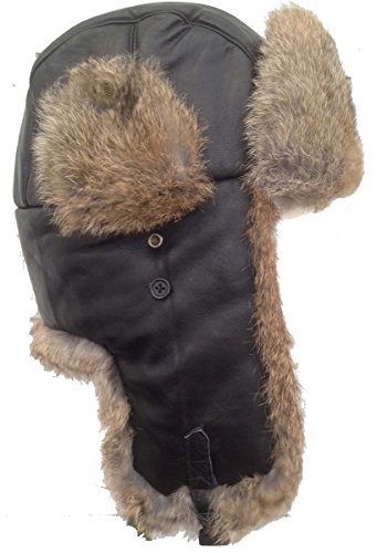 Binding : Apparel Product Description The Real Sheepskin Leather (very soft) and Rabbit Fur make this bombardier hat super warm. The ear flaps tie either up or down. When up, there is a small hole to improve hearing. Under the chin is an adjustable plastic snap to hold the fur lined flaps together. The hat can also be worn with the ear flaps tied over the top of the hat (Russian design). These hats run a little small, so please order one letter size larger than you would normally wear. To determine your correct size, take a tape measure or string around your head. adjusting for the smaller sizes, these are the correct sizes to order: Medium (6 3/4, 54 cm, 21 1/4"). Large (7, 56 cm, 22"), Extra Large (7 1/4, 58 cm, 22 7/8"), XXLarge (7 1/2, 60 cm, 23 5/8"), XXXLarge (7 3/4, 62 cm. 24 1/2") 0